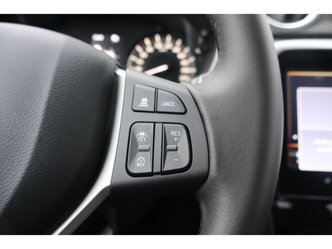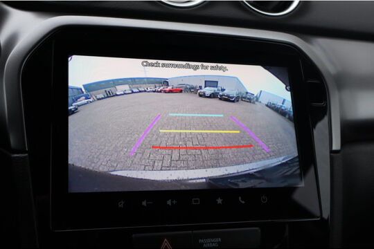 De achteruitrijcamera brengt precies in zicht wat zich achter u bevindt en toont een glashelder beeld op hoge resolutie. Een geluidssignaal waarschuwt hoeveel ruimte u nog heeft. Adaptive cruise control houdt de ingestelde snelheid vast en houdt automatisch afstand tot uw voorligger. Wat is de onderhoudsstatus van deze auto? U checkt het snel, simpel en overal via uw smartphone. De snelste of zuinigste weg? Het navigatiesysteem aan boord wijst de juiste weg! Ook over uw schouder ziet u onderweg niet alles wat er aan de achterzijde gebeurt. Daarom heeft deze Suzuki Vitara een achteropkomend verkeer waarschuwing. Natuurlijk behoren electronic climate control, DAB ontvangst, regensensor, keyless entry, automatisch dimmende binnenspiegel en lederen stuur ook tot de uitrusting van deze complete auto.