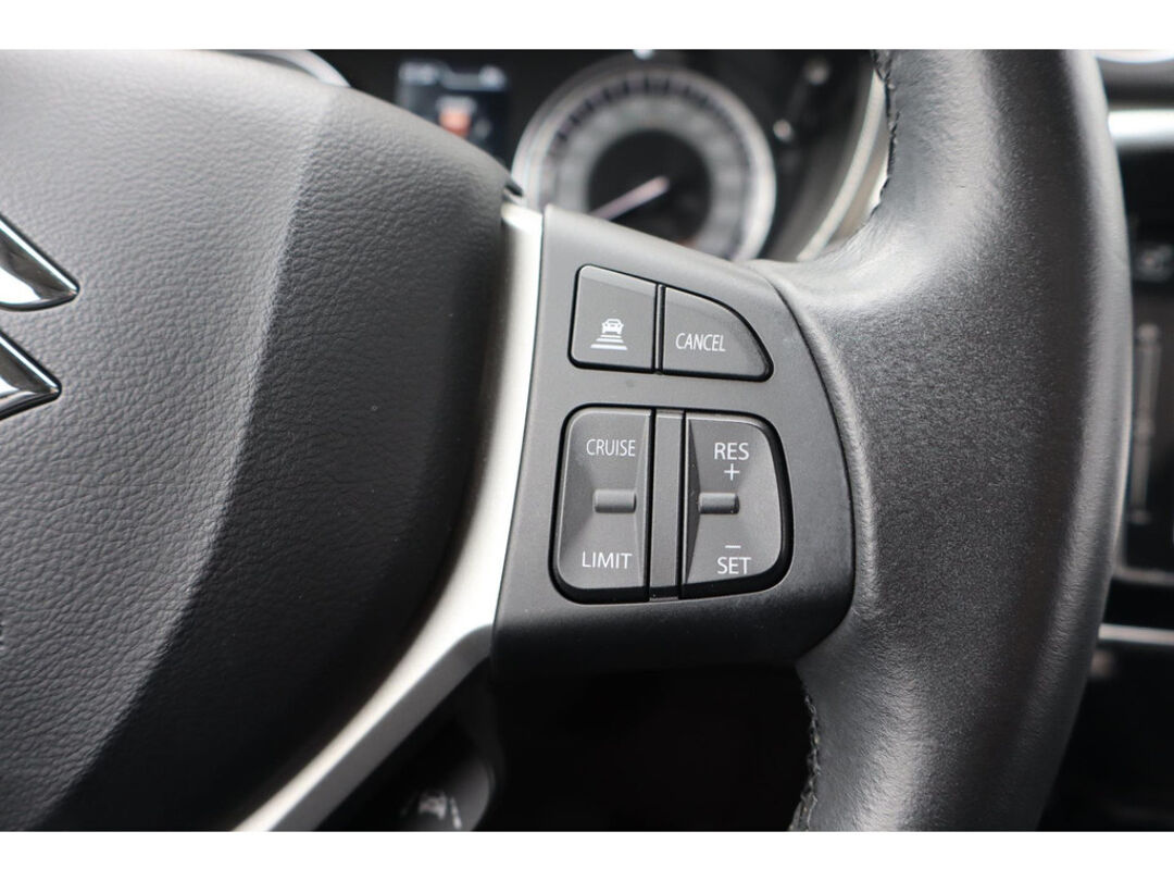 Kommaar-kommaar-kommaar, aldus de achteruitrijcamera. Iedere centimeter vrije ruimte komt haarscherp in beeld. Schadevrij inparkeren maar! Als u de adaptive cruise control inschakelt, regelt de auto zelf de snelheid en de afstand tot de auto voor u. Het navigatiesysteem zorgt ervoor dat u altijd de juiste en snelste route vindt. De achteropkomend verkeer waarschuwing geeft een signaal als degene achter u te dicht op u zit. Ook handig en veilig bij het wisselen van rijbaan. Electronic climate control regelt volautomatisch de temperatuur. U kiest de gewenste temperatuur en het systeem doet de rest. Deze Suzuki is voorzien van DAB ontvangst, regensensor, keyless entry, lederen stuur, bagage afdekhoes en boordcomputer.