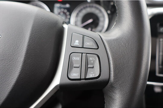 Ongelukken of parkeerschade? Dat gebeurt u niet meer, met de achteruitrijcamera. Met adaptive cruise control houdt de auto zelfstandig afstand tot uw voorligger. Een veiligheidsverhogende optie waarmee u comfortabel onderweg bent. Een optie die de veiligheid verhoogt, is de bediening vanaf het stuur van het audiosysteem (met DAB-radio!) en het navigatiesysteem. Op een drukke weg heeft u soms ogen in uw achterhoofd nodig. De sensoren aan de achterzijde nemen die functie over en geven een achteropkomend verkeer waarschuwing als een achterligger te dicht op u zit. De electronic climate control zorgt voor een behaaglijk klimaat in de auto. De uitrusting van deze Suzuki is met regensensor, keyless entry, lederen stuur, bagage afdekhoes en boordcomputer behoorlijk compleet.